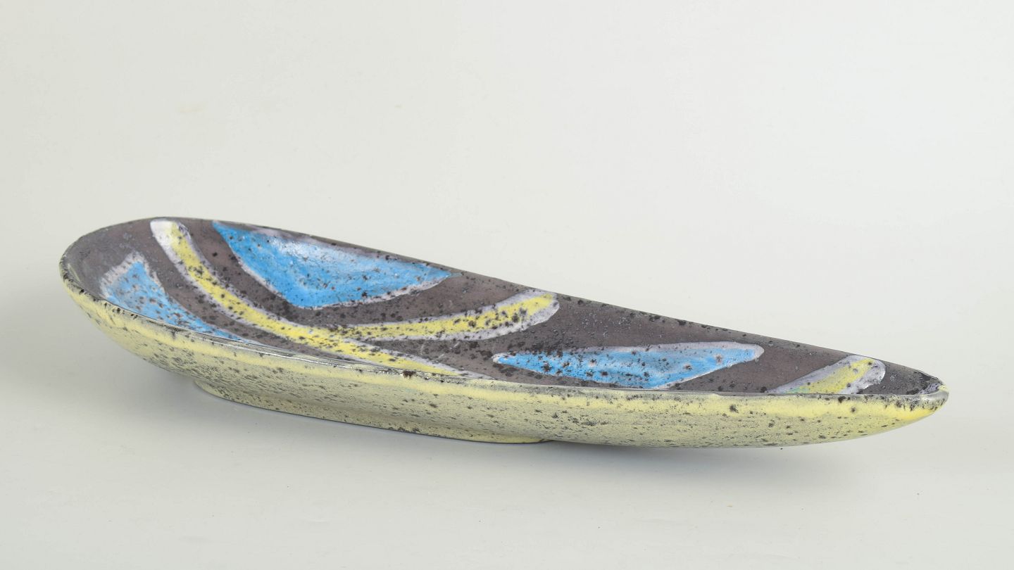Guido Gambone (1909–1969) was one of the most significant Italian ceramic artists of the mid-20th century, celebrated for confident forms and vivid, graphic decoration. His work ranges from sculptural pieces to functional objects, often defined by bold colour fields, freehand motifs, and a distinctly modernist sensibility. Bitossi of Montelupo Fiorentino was, at the same time, among Italy’s leading ceramic workshops, and its production from the 1950s and 60s is now regarded as highly collectible Italian design.