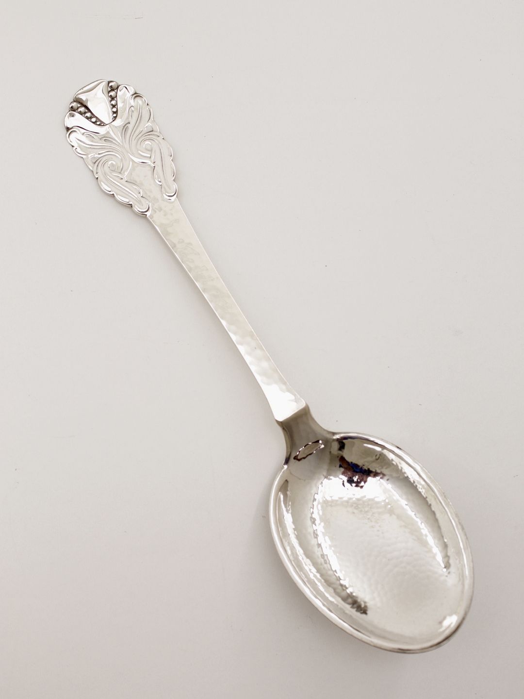 Hammerslået art nouveau stor serverings ske L. 28 cm.