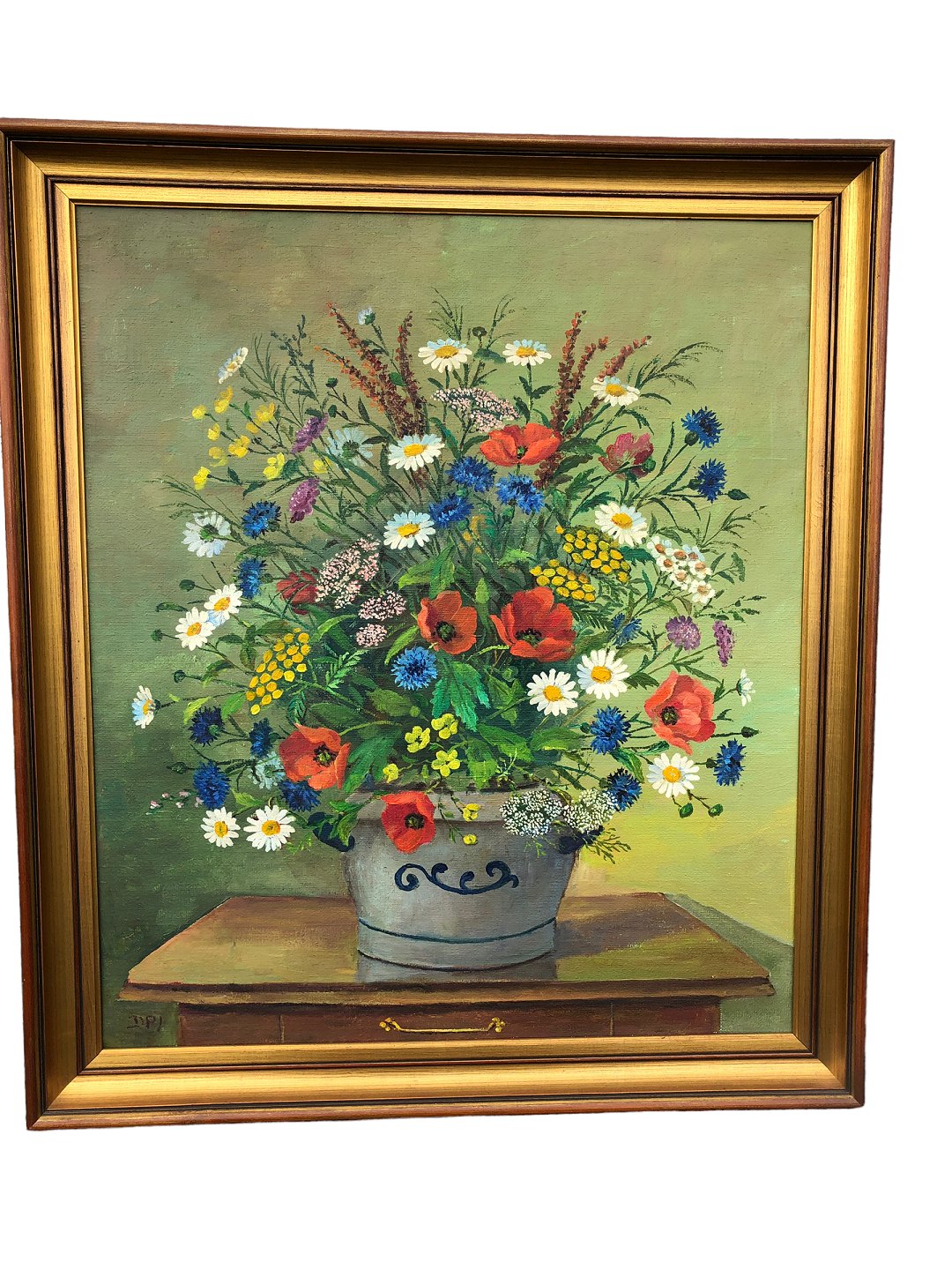 Flowers painting. Oil painting on canvas. Signed DPL. Dimensions with frame: 64x73 cm