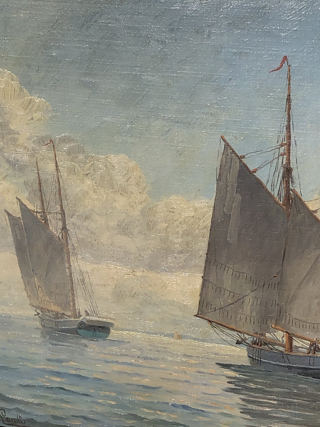 Frants Landt (1885-1975). oil painting on canvas, Marine painting in good condition, Dimensions with frame 71x56 cm