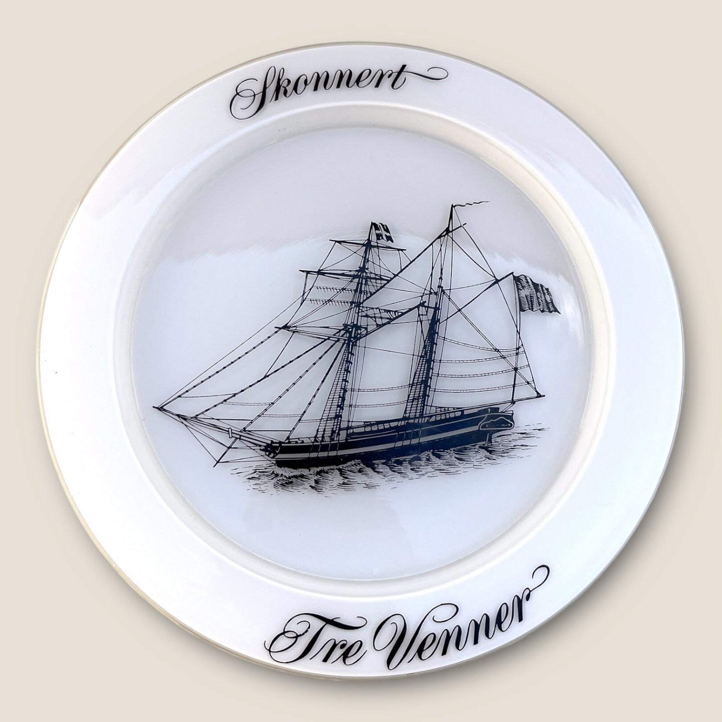 Holmegaard, Skibsplatte, 1972, Schooner, Three Friends, 19.5cm in diameter, Design Michael Bang *Perfect condition*