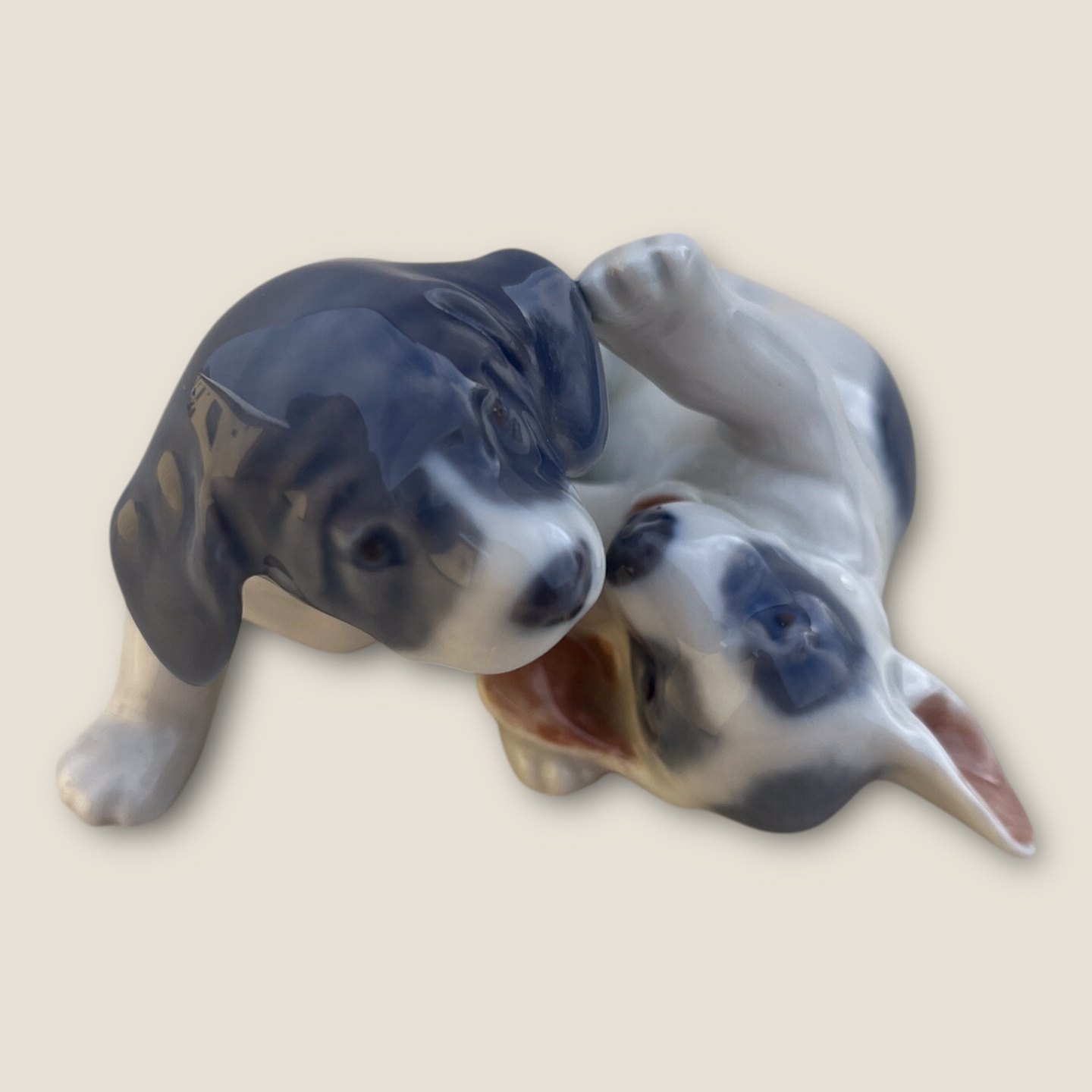 Royal Copenhagen, Playful Pointer Puppies #453, 9.5cm x 8cm, 1st grade, Design Erik Nielsen *A little rough on one ear, otherwise perfect condition*
