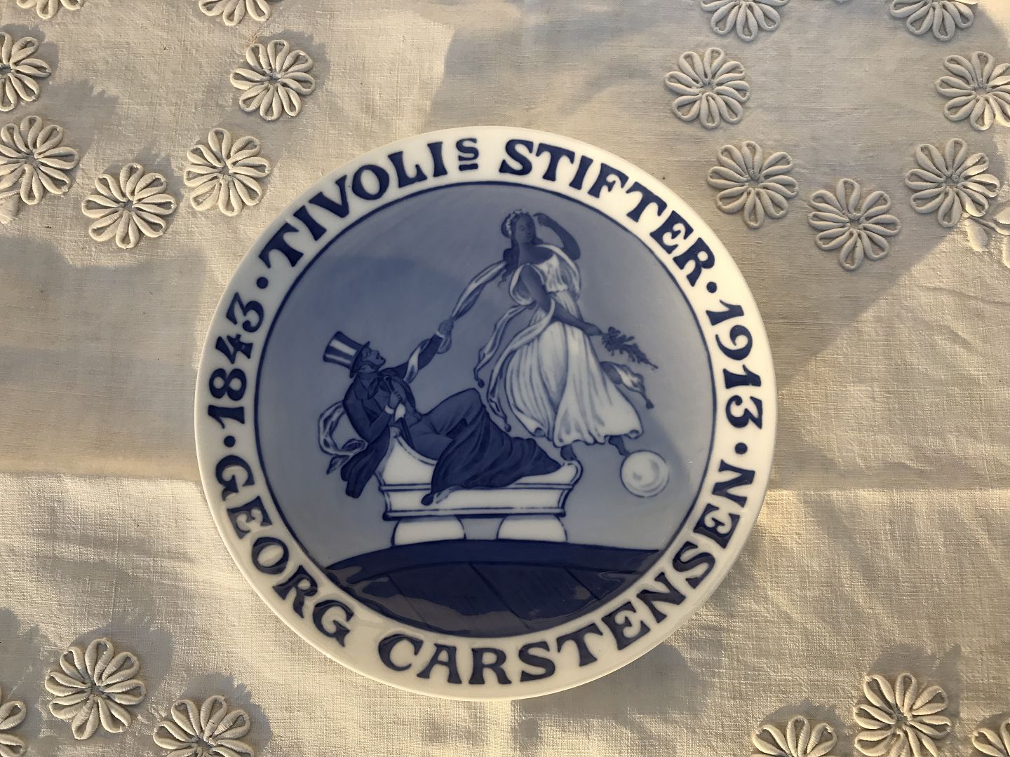 Royal Copenhagen, Tivoli Teller, Georg Carstensen und Fortuna in der Folie, Anlässlich des 70. Jubiläums von Tivoli, 17,5 cm Durchmesser, 1. Sortierung, Ausführung in 626 Exemplaren, Design Christian Thomsen * Guter Zustand *