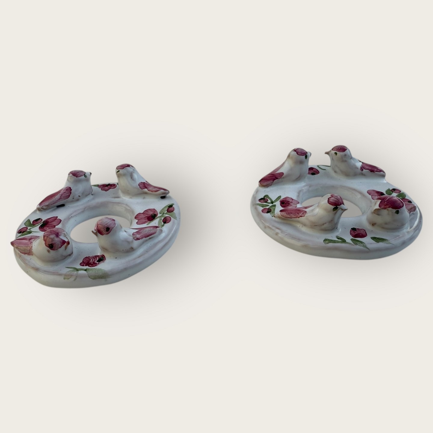 Torben Ceramics, ein Set Kerzenmanschetten mit roten Vögeln, Durchmesser 6 cm, guter Zustand