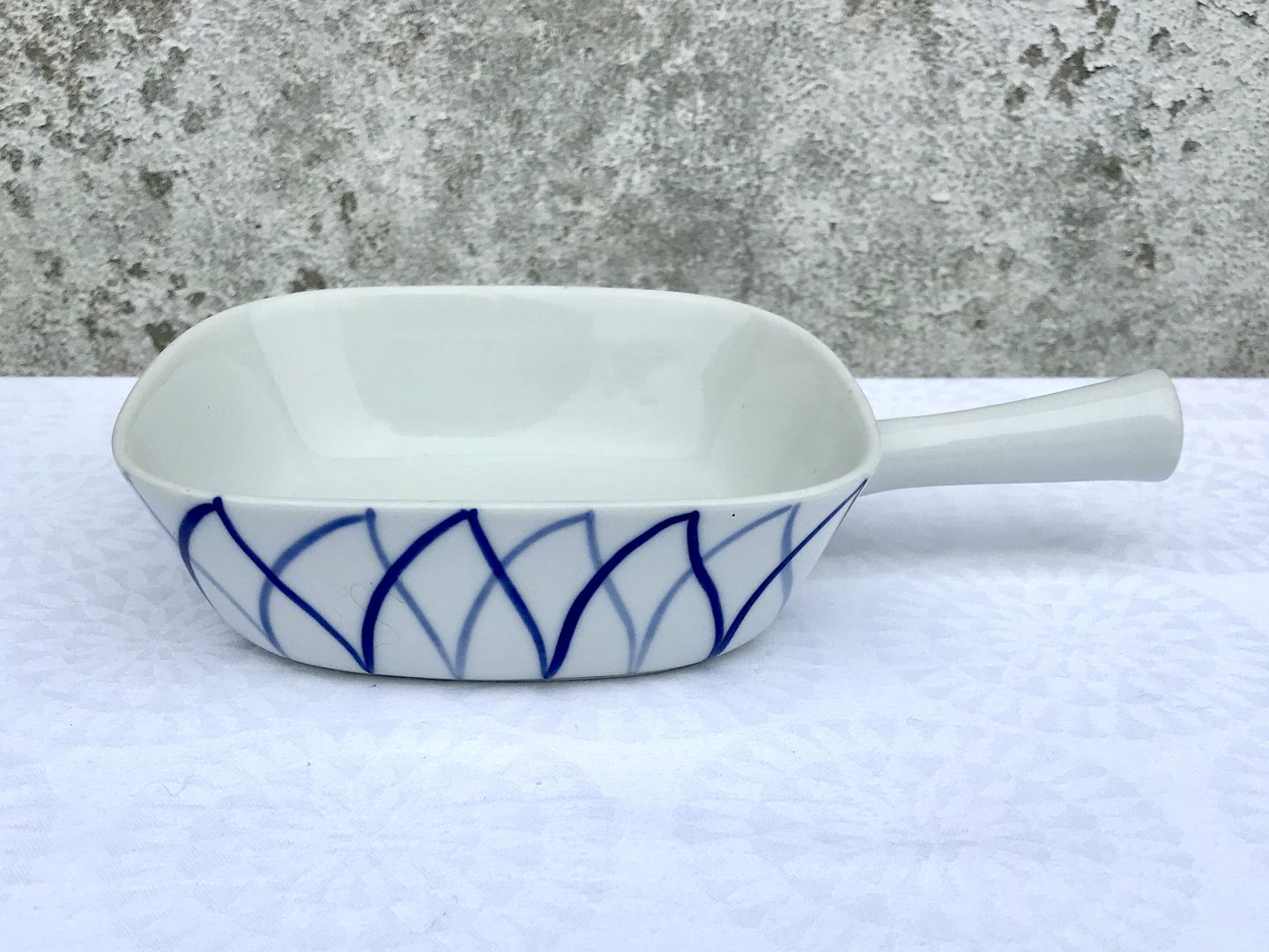 Lyngby, Danild 40, Harlekin, Blå flamme, Frikadellefad / Pande, 24cm lang, 16cm bred, 2. Sortering, Design Axel Brüel & Egon Mortensen *Pæn stand*