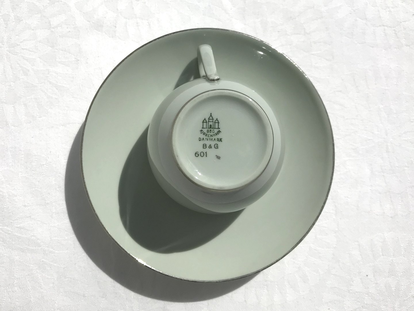 Bing & Grøndahl, Apollon med platinkant, Kaffesæt #601, 5,5cm høj, 7cm i diameter *Pæn stand*