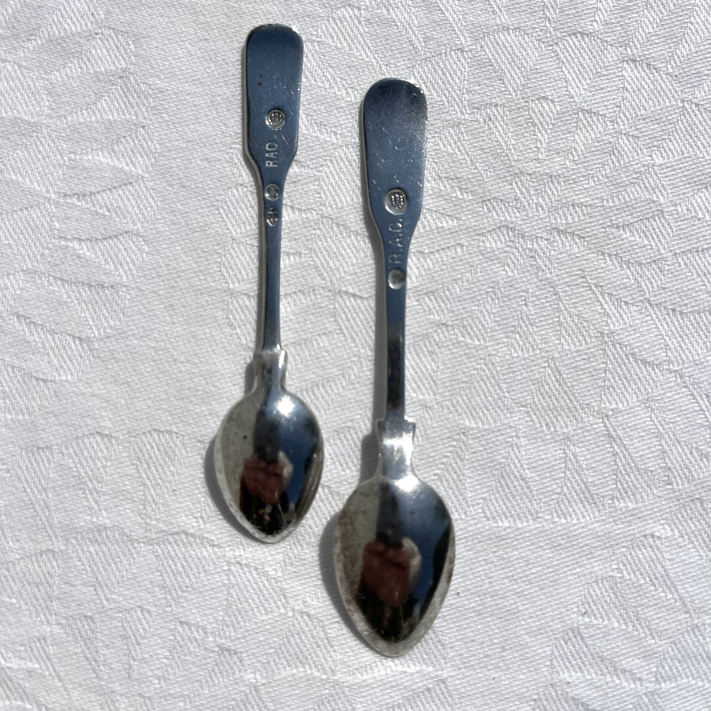 Mussel, Three-tower silver (830S) salt spoon, 7.4 cm long and 8.1 cm long * Used condition *