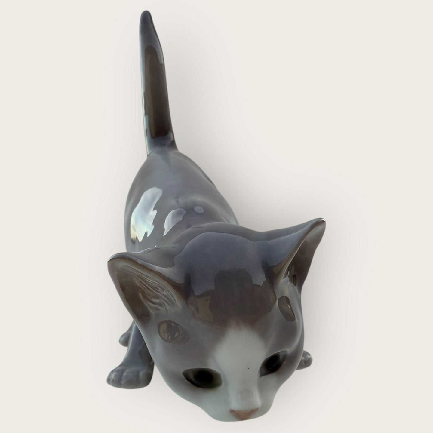 Bing & Grondahl, Gray cat with raised tail, # 2517, 1st grade, Dimensions approx. 12x13x6cm *Good condition*