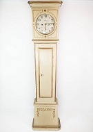 Grandfather clock of white painted wood decorated with gold from the 1820s.