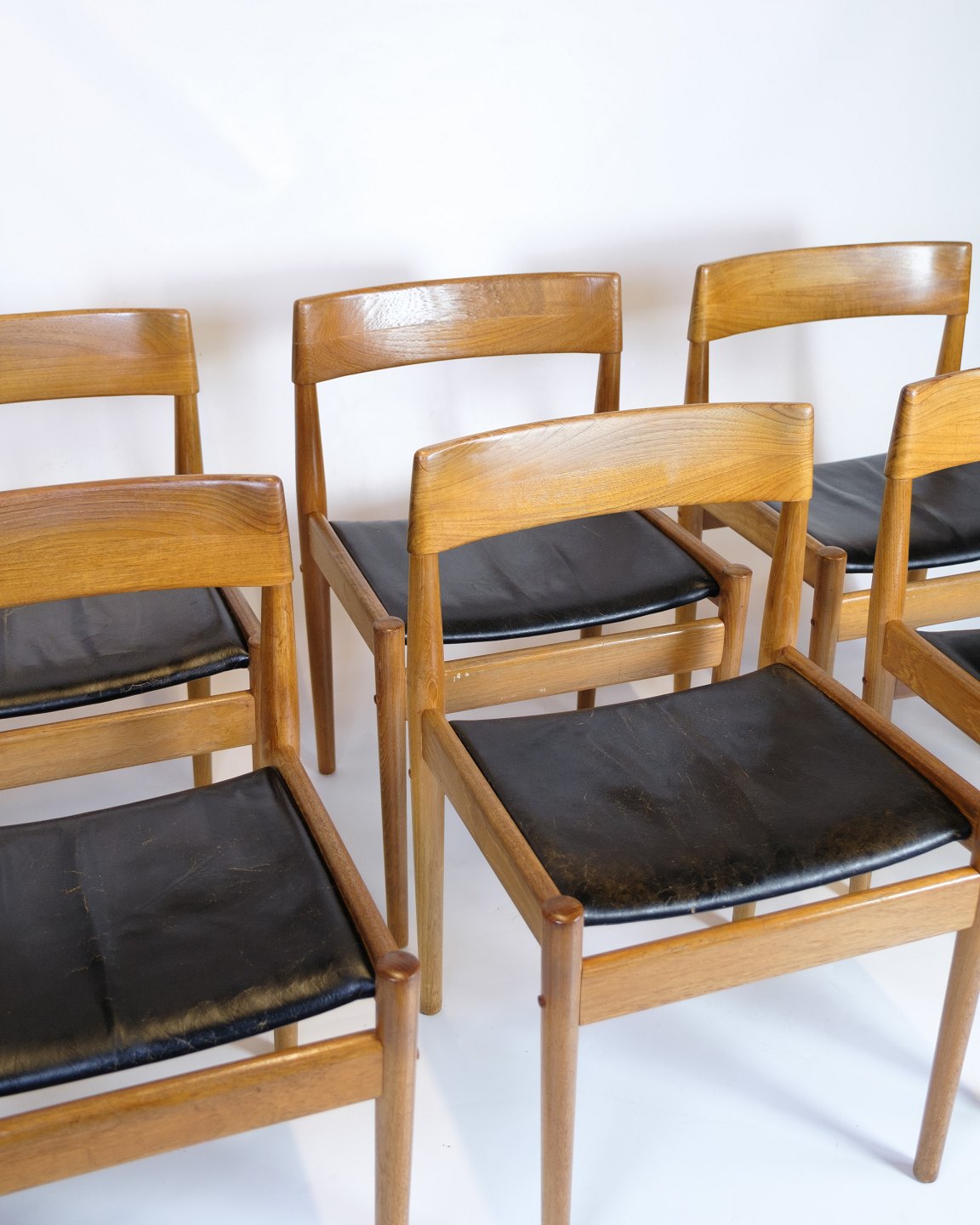Set of 6 Dining Chairs - Model P H 3-2 - Teak and Black Leather - Grete Jalk - P. Jeppesen - 1960s
