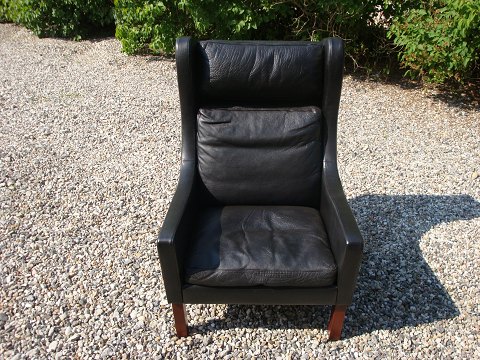 Recliner / wing chair in black leather Danish design from the 1960s stands as a new 5000 m2 showroom