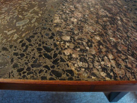 Sofabord i palisander med smuk stenplade. Købt på den permanente i super kvalitet. 104*104*50 cm.