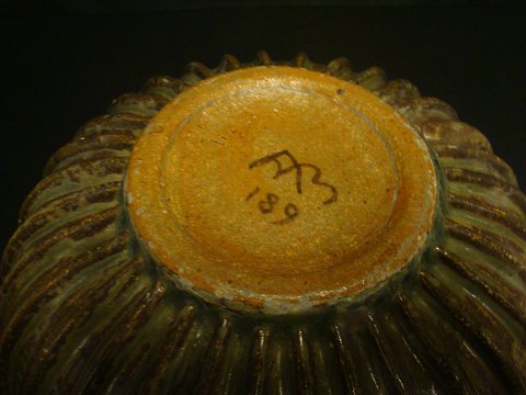 SoldArne Bang bowl made of glazed stoneware with vertical fluting. Ø26cm and Height 11cm. In perfect condition.