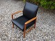 SolgtHvilestol, Dansk design fra 1960érne. Stolen er i teak og med sort læder. Stolen er istandsat.