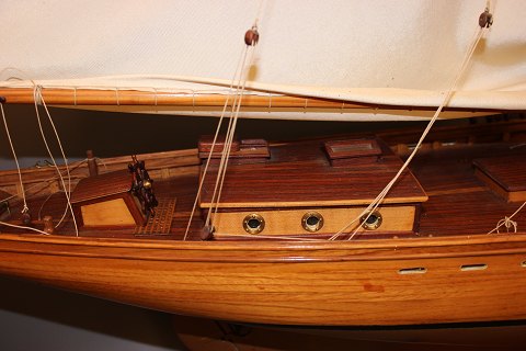 Sailing ship in Wood, everything is hand made and built over 2 years. Built in 1982 by Poul Løvstrøm Olsen. Built after the famous sailing ship Blue Nose II of Lundberg Novagen Scotia from 1921 which won numerous competitions. The ship is equipped with a motor. Has been launched in the 1984 Lilleø in Korsor. Named Blue-Nose. Everything is in perfect condition and is included original drawings, diary of the 2 year of construction plus small men, fishing nets and many other things.