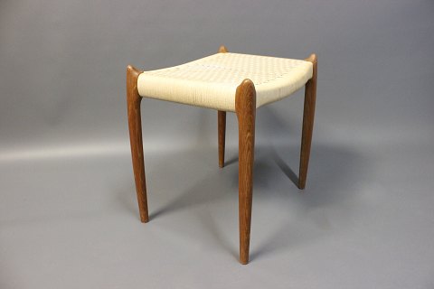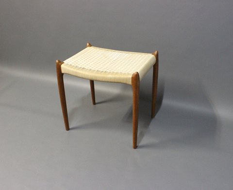 SolgtSkammel, model 80 A, i teak og hvid flet designet af N.O. Møller og produceret af J.L. Møller i 1960erne.