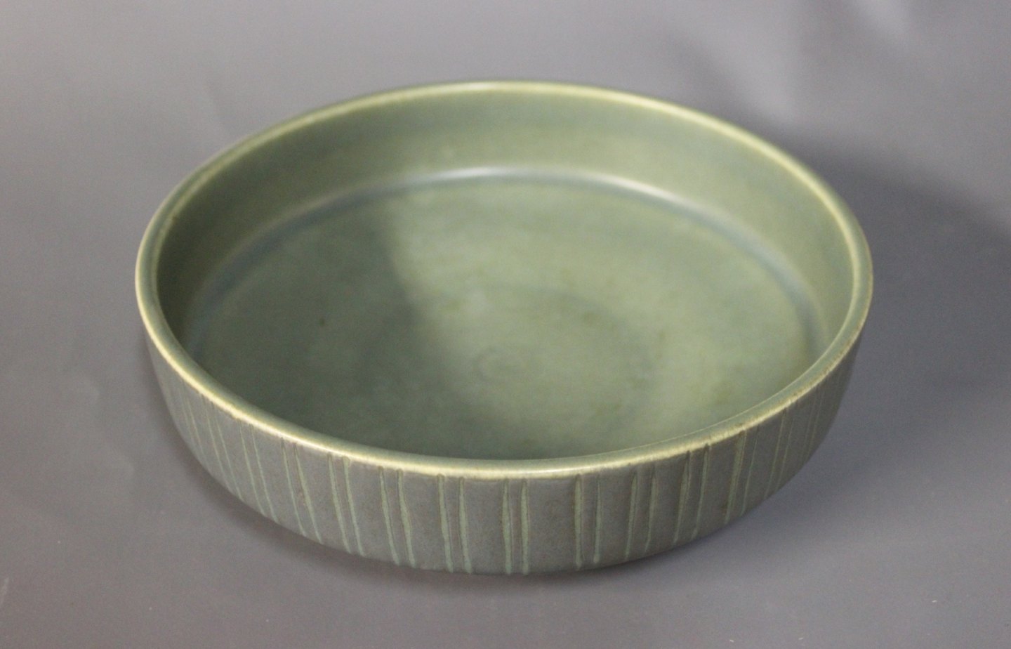 Large low bowl in green colors by Søholm Denmark.