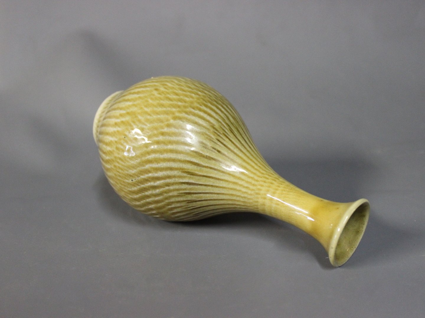 SolgtVase med smukt mønster i grønlige farver af Boveskov Stentøj.