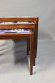 A set of nesting tables in rosewood with tiles in blue colors, Danish Design from the 1960s.