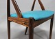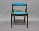 Et sæt af seks spisestuestole, model 31, designet af Kai Kristiansen i 1956 og fremstillet hos Schou Andersen i 1960erne. Stolene er i palisander og polstret i blåt stof.