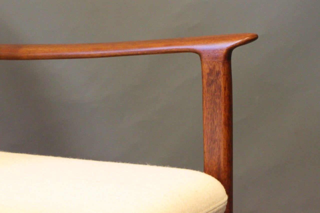 PJ112 easy chair in polished mahogany by Ole Wanscher and P. Jeppesen.