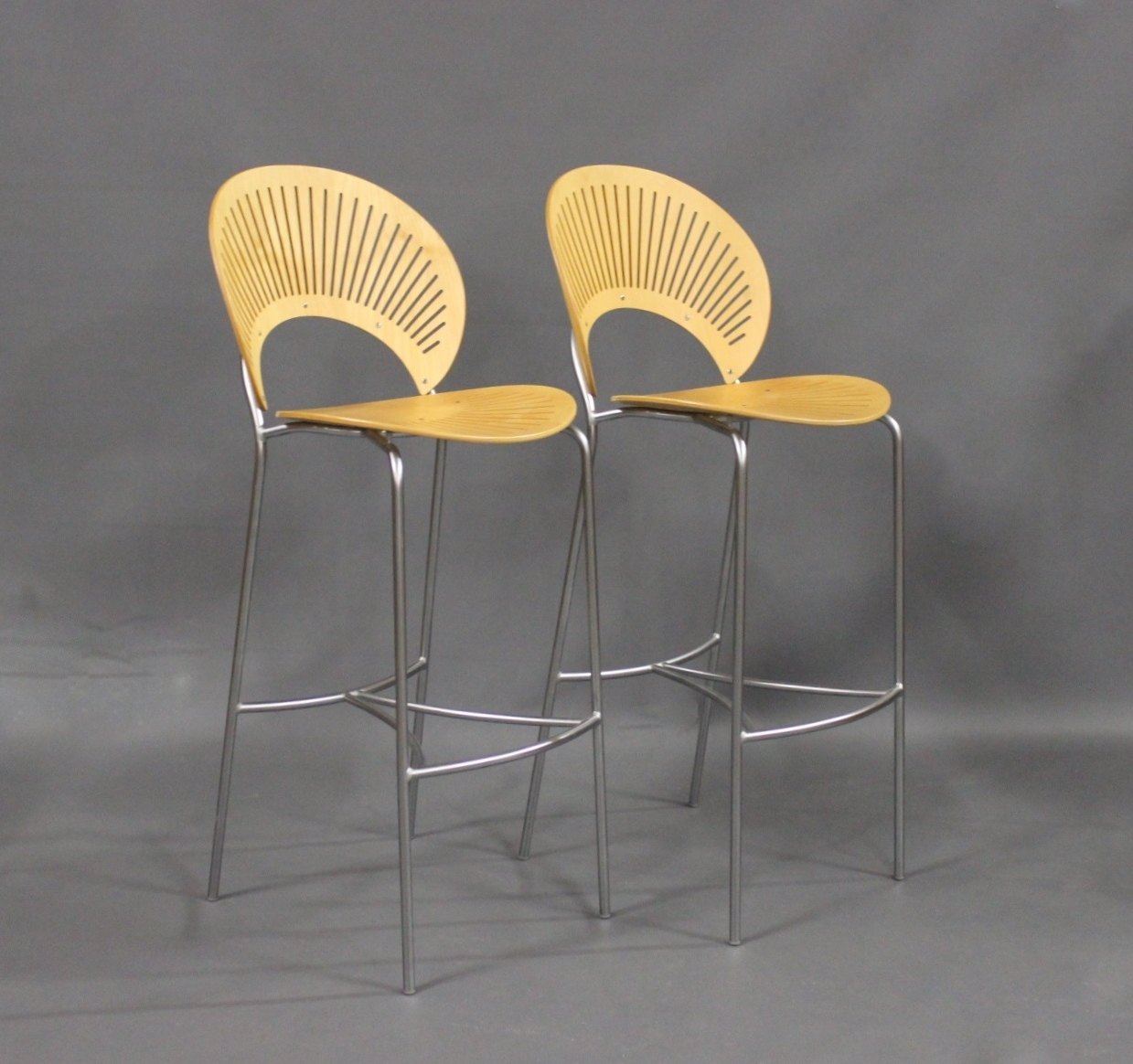 SoldA set of Trinidad stools in Birch and with frame in chrome. The stools was designed by Nanna Ditzel in 1998 and manufactured by Fredericia furniture. Model no. 3300 and serial no. 1002.