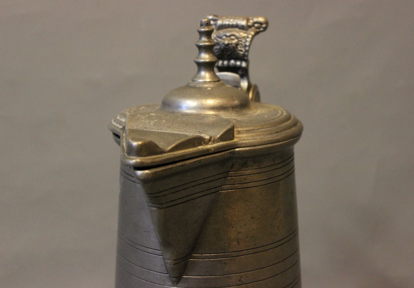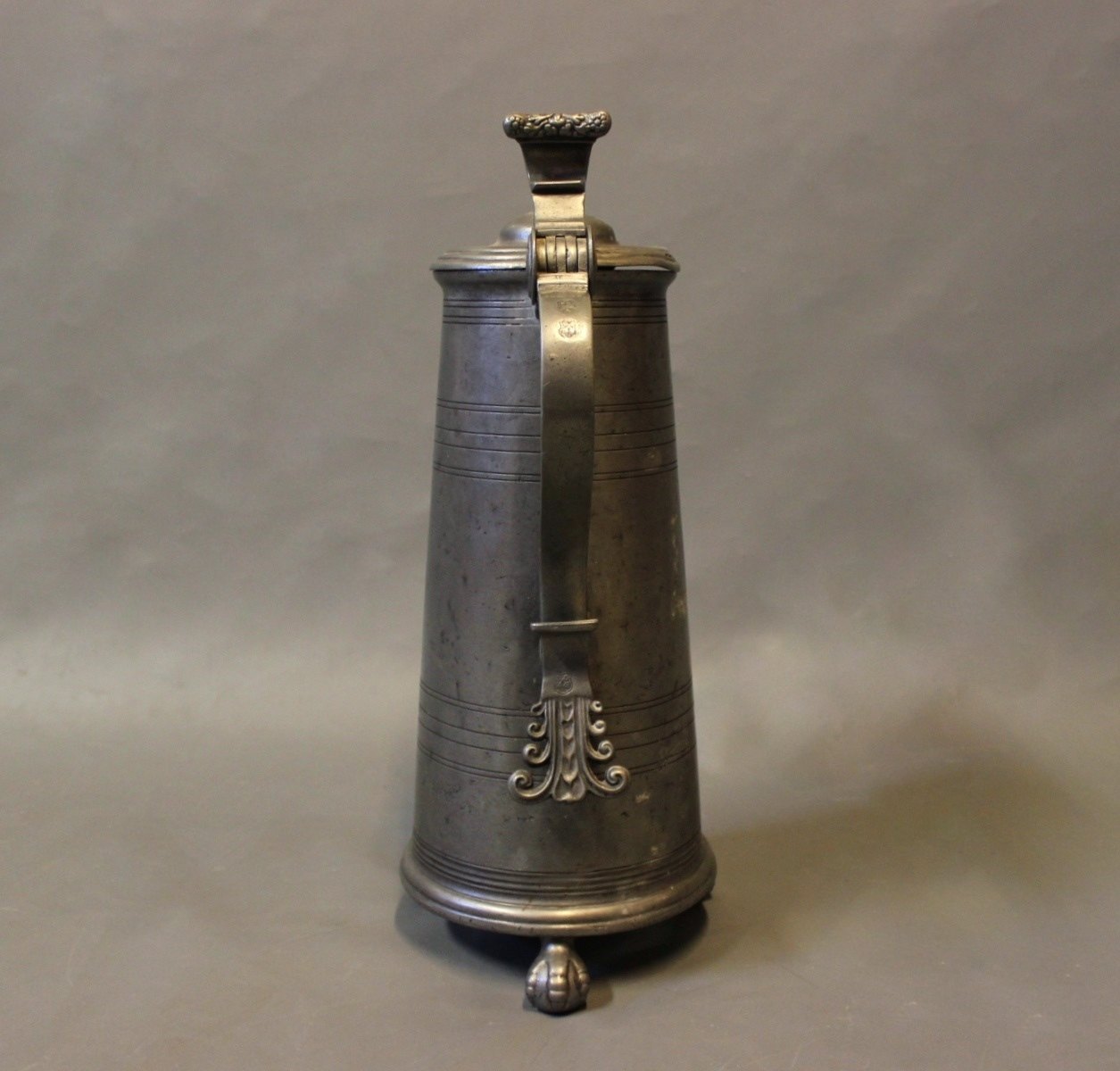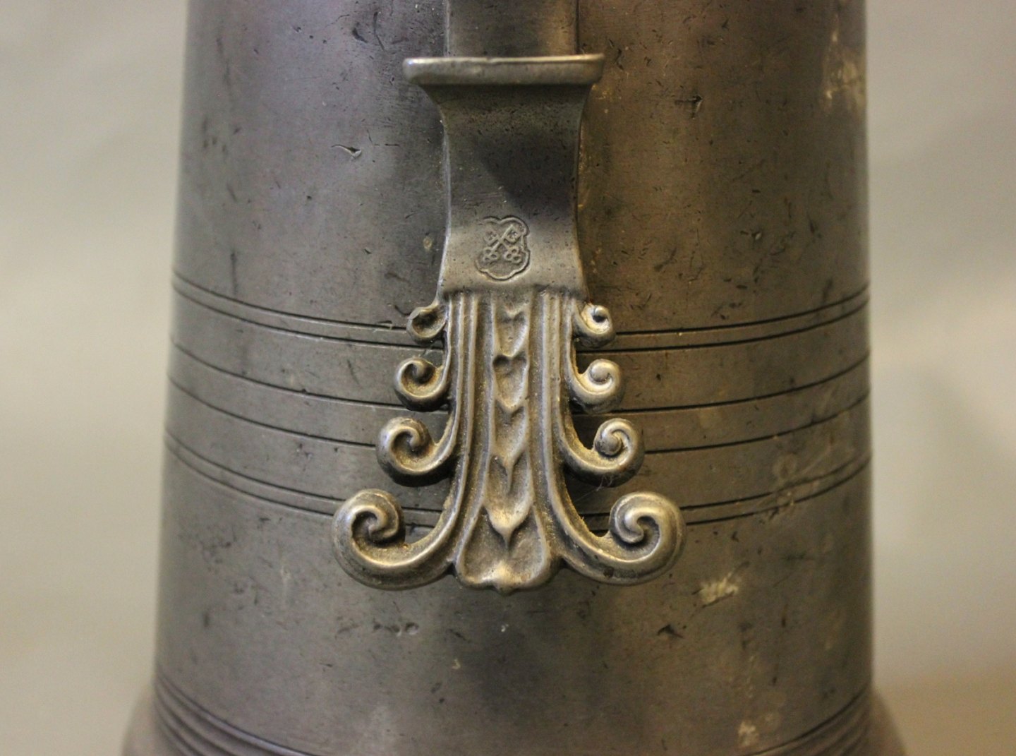 SoldLarge lidded mug in tin from Germany around the year 1780.