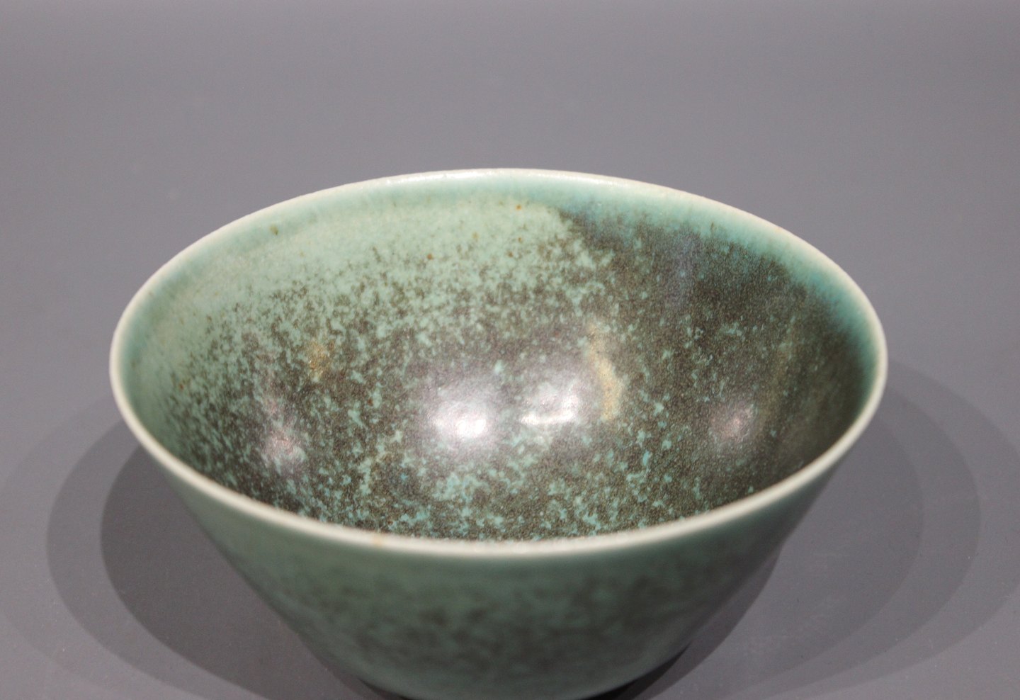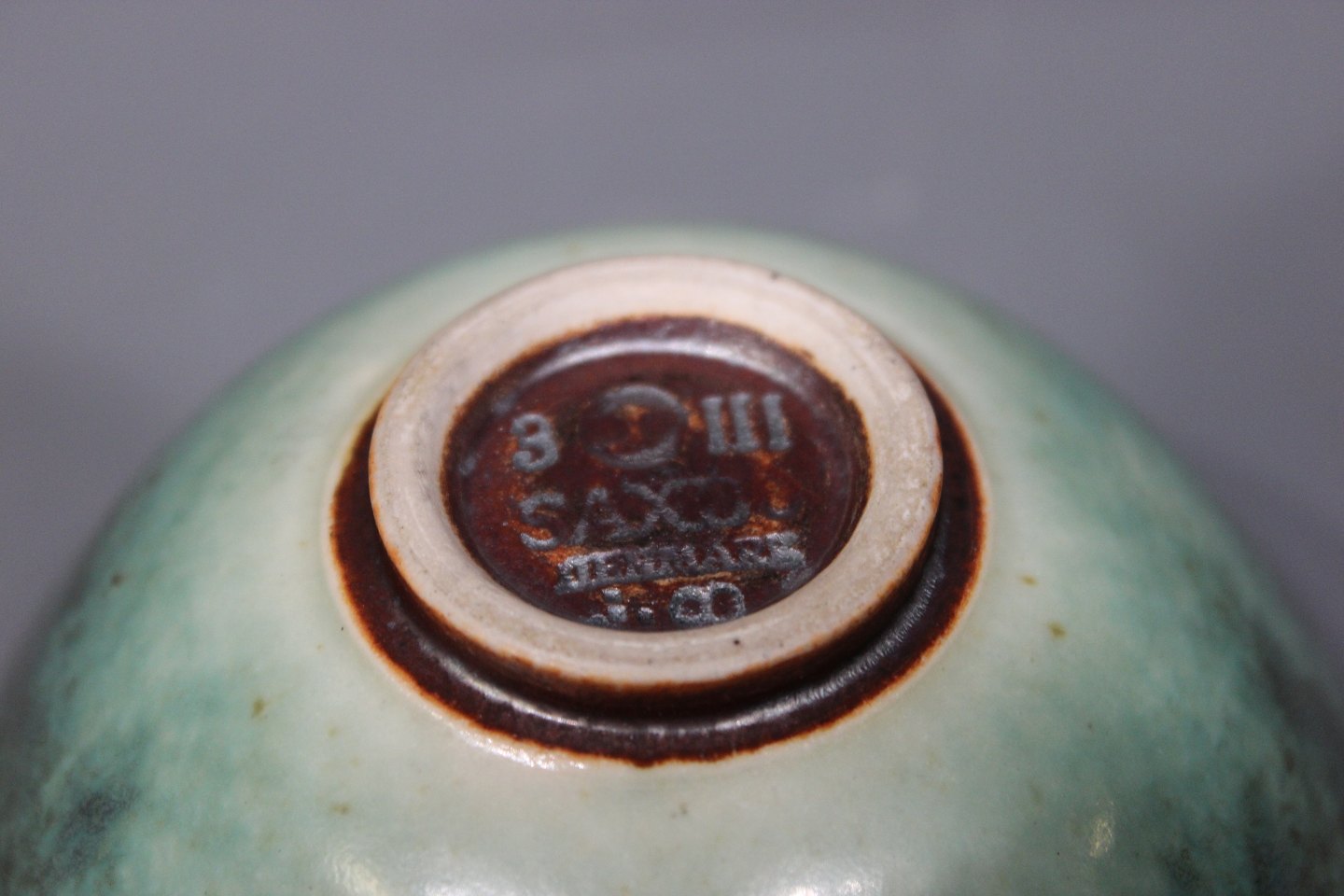 SolgtKeramik skål i lysegrøn/turkis glasur, nr.: 3 af Saxbo. Skålen er i flot brugt stand.