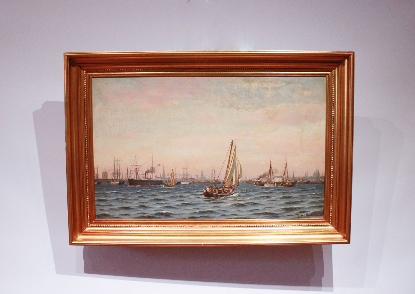 Marine painting with Copenhagen's towers in the background and with gilded frame by Johan Neumann.