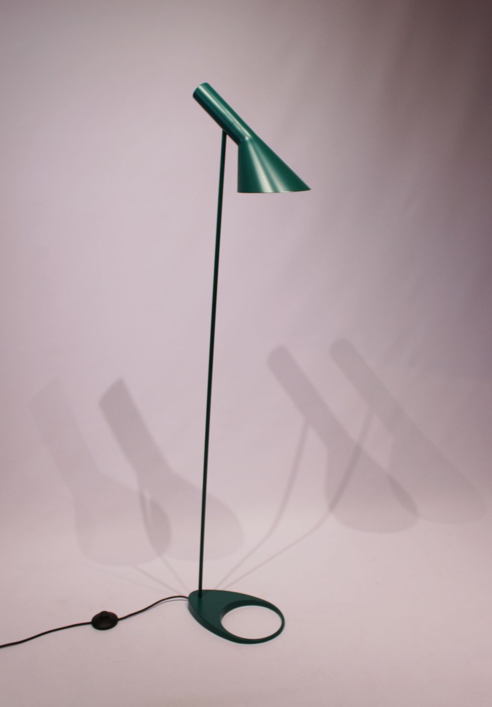 SolgtGrøn gulvlampe designet af Arne Jacobsen i 1960 og fremstillet af Louis Poulsen. Lampen er i rigtig flot brugt stand.