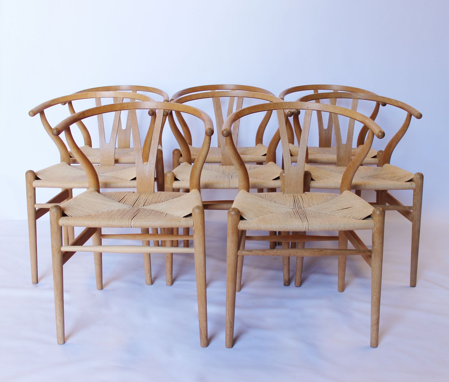 Sæt af 8 Y-stole, model CH24, i eg og naturflet designet af Hans J. Wegner og fremstillet af Carl Hansen & Søn i 1980erne.