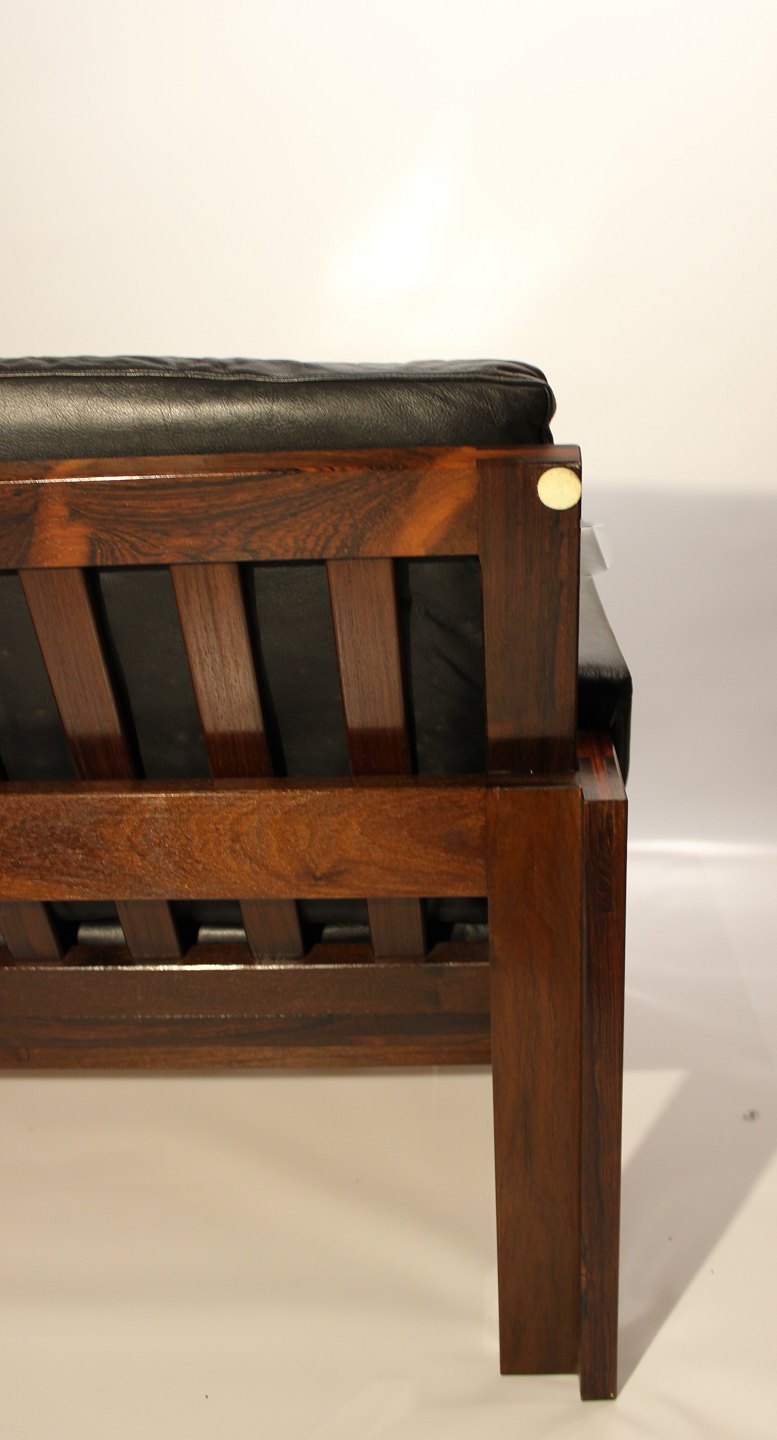 Sofa in rosewood and black leather of danish design from the 1960s. The sofa is in great vintage condition.