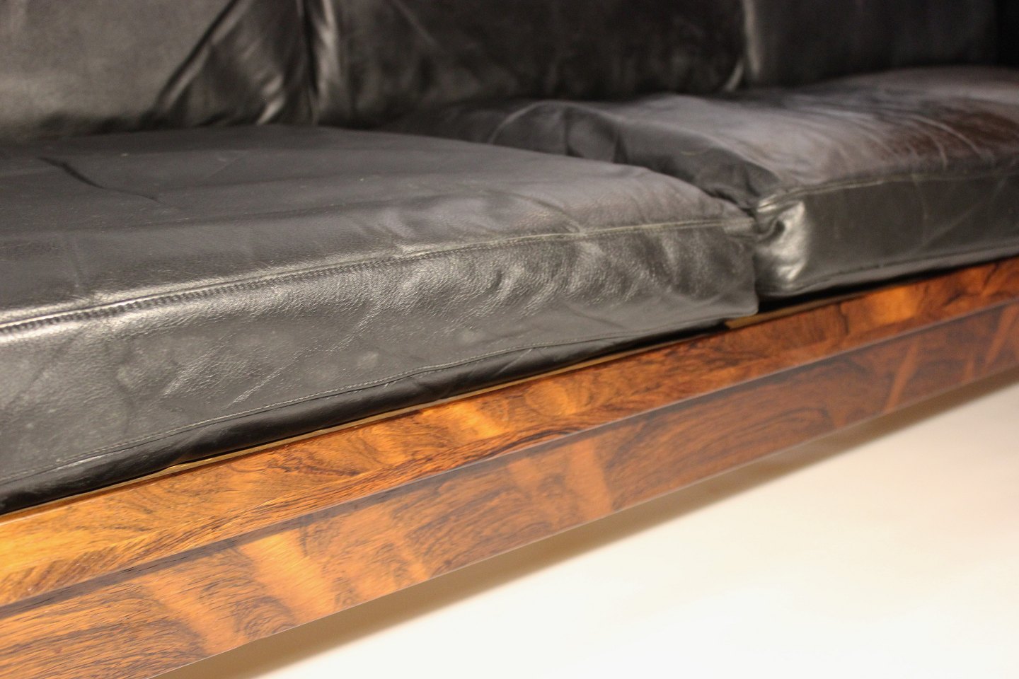 Sofa in rosewood and black leather of danish design from the 1960s.