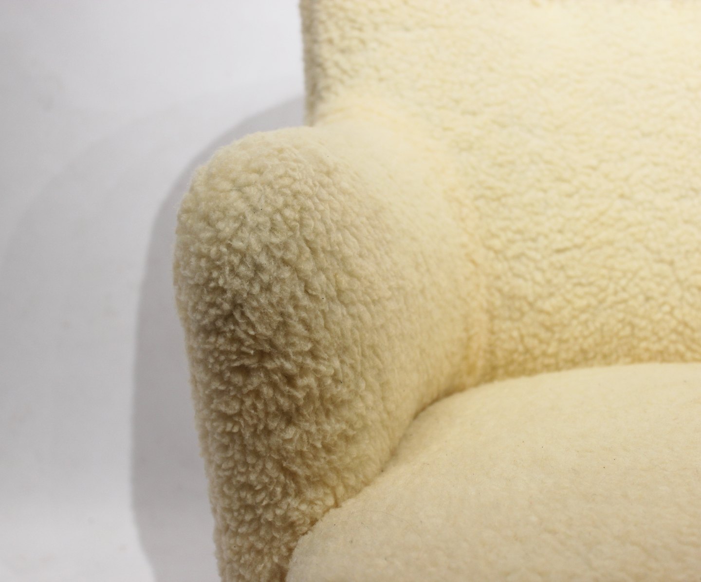 Hvilestol polstret med fåreuld og ben af mahogni fra 1940erne.