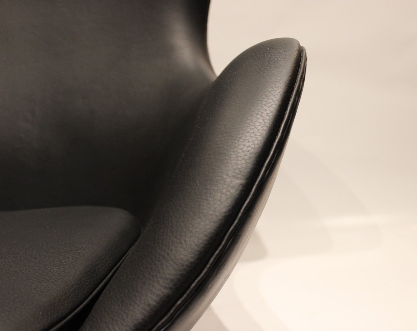 Ægget, model 3316 designet af Arne Jacobsen i 1958 og fremstillet af Fritz Hansen i 1960erne. Stolen er nypolstret i sort klassisk læder og er i rigtig flot stand.