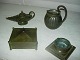 Aladin Lamp - 1400 kr., pot - 950 kr., jewelcase - 1200 kr. and candelstick - 550 kr. All the items are by Just Andersen and in diske metal. They are all in very good condition.