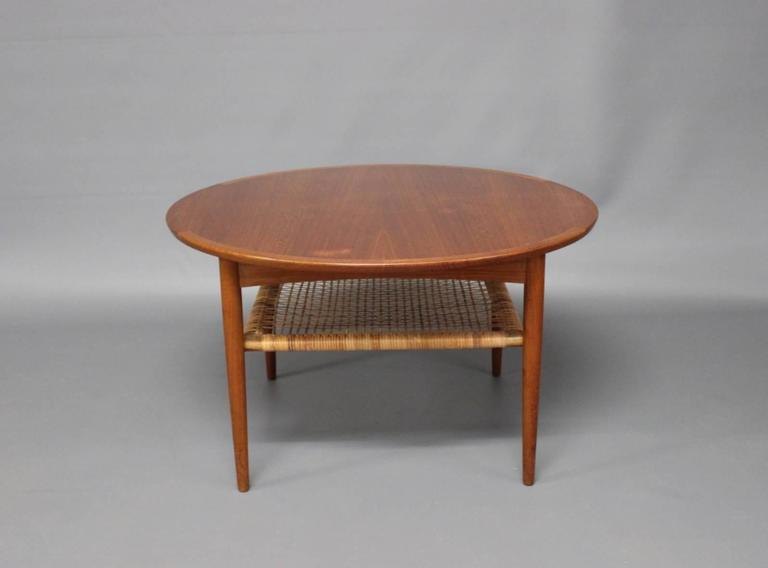 Coffee table in teak with cord shelf stamped "Møbelintarsia". The table was designed in the 1950s and manufactured in the 1960s.