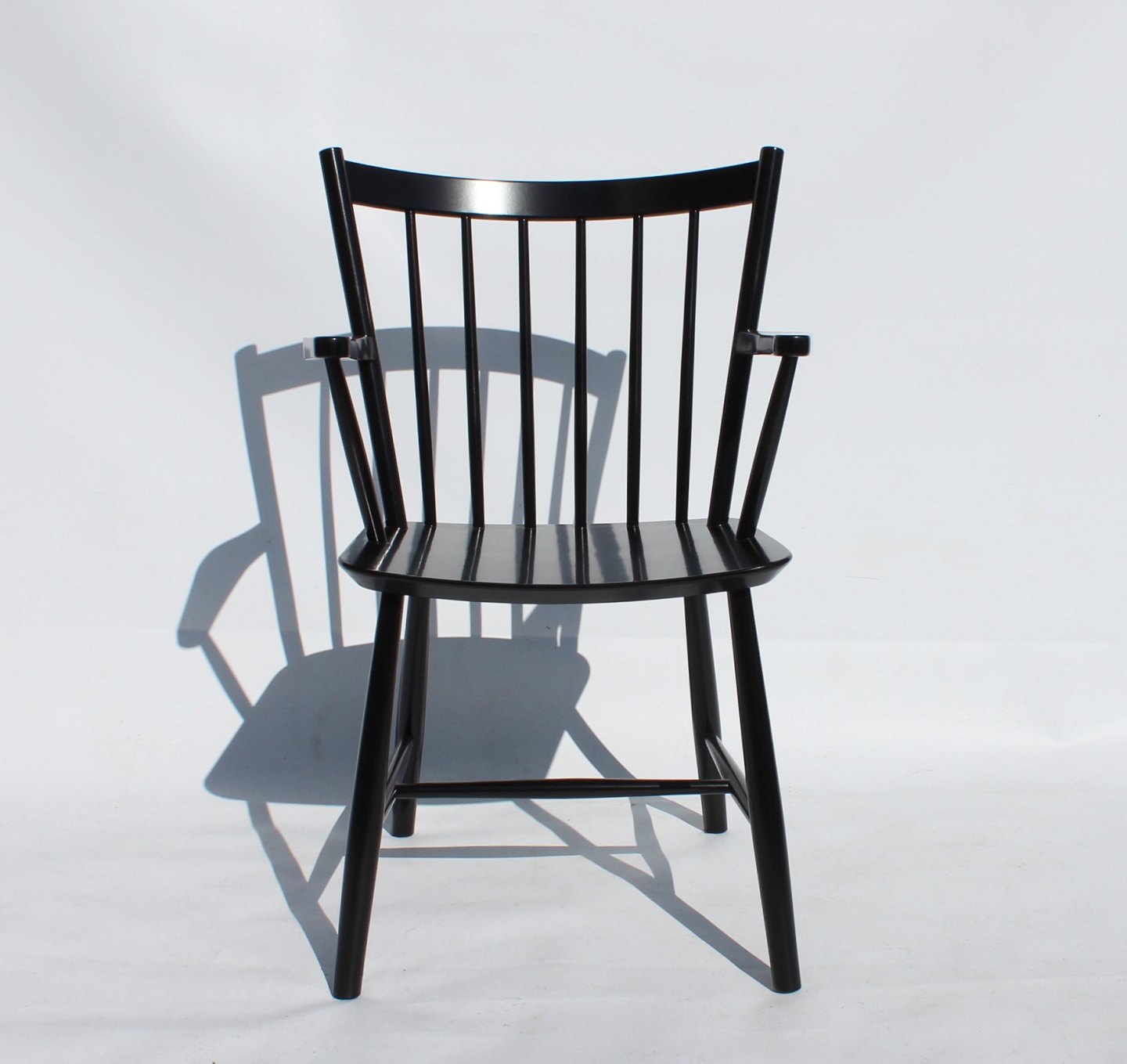 SolgtArmstol, model J42, af sort malet bøgetræ designet af Børge Mogensen og fremstillet af FDB. Stolen er i flot brugt stand.