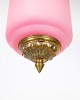 Antik Ampel med lyserødt opal glas med messing kant og ophæng, fra omkring år 1860.