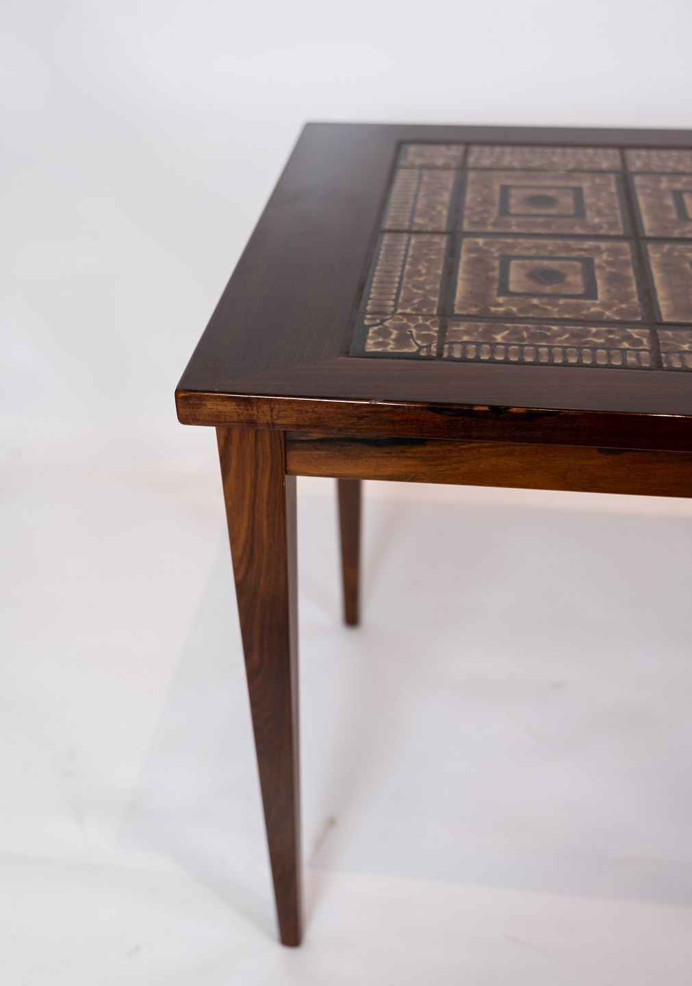 SoldA pair of bedside tables in mahogany with brown tiles of danish design from the 1960s. The tables are in great vintage condition.