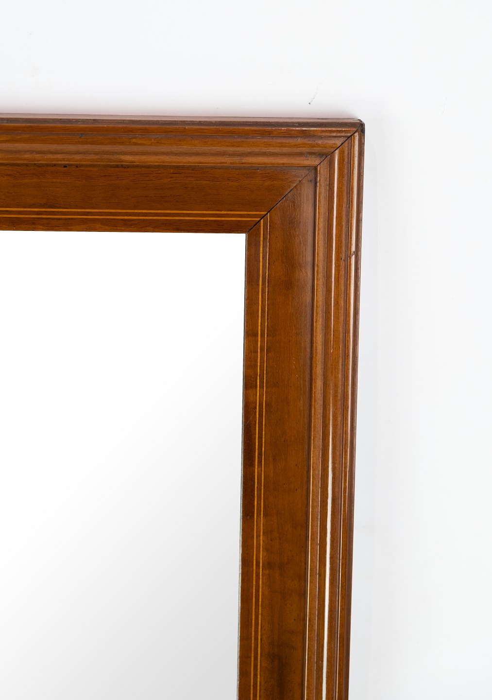 Spejl af håndpoleret valnød med intarsia fra 1880. Spejlet er i flot brugt stand.