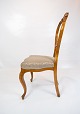 Sæt af seks Rokoko spisestuestole af lys mahogni og mønstret stof fra omkring år 1760. Stolene er i flot brugt stand.