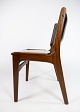 Et sæt stole i teak og med sort læder, designet af Erik Buch i 1960'erne, udstråler en tidløs elegance og funktionalitet. Disse stole er et smukt eksempel på dansk møbeldesign fra midten af det 20. århundrede og vil tilføre enhver indretning en sublim atmosfære.