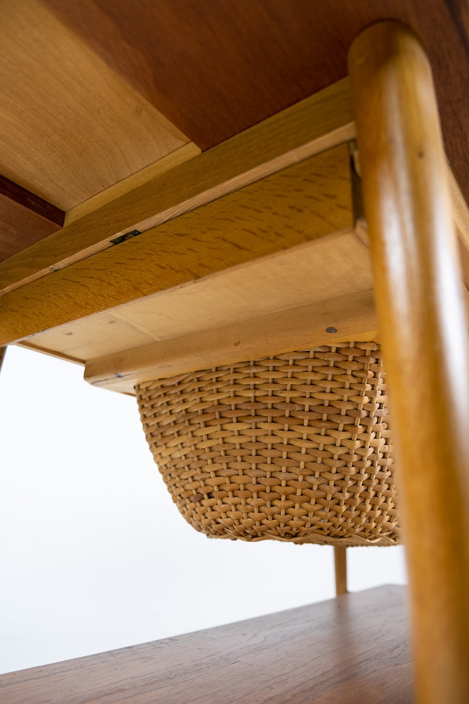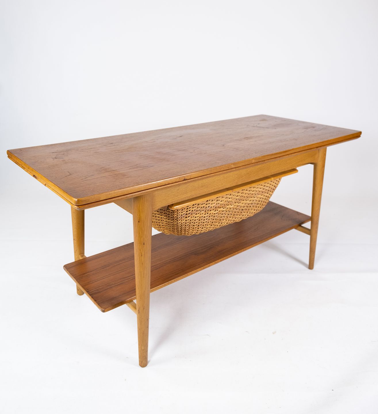 SoldCoffee- and Sewing table in oak and teak of danish design from the 1960s. The table is in great vintage condition.