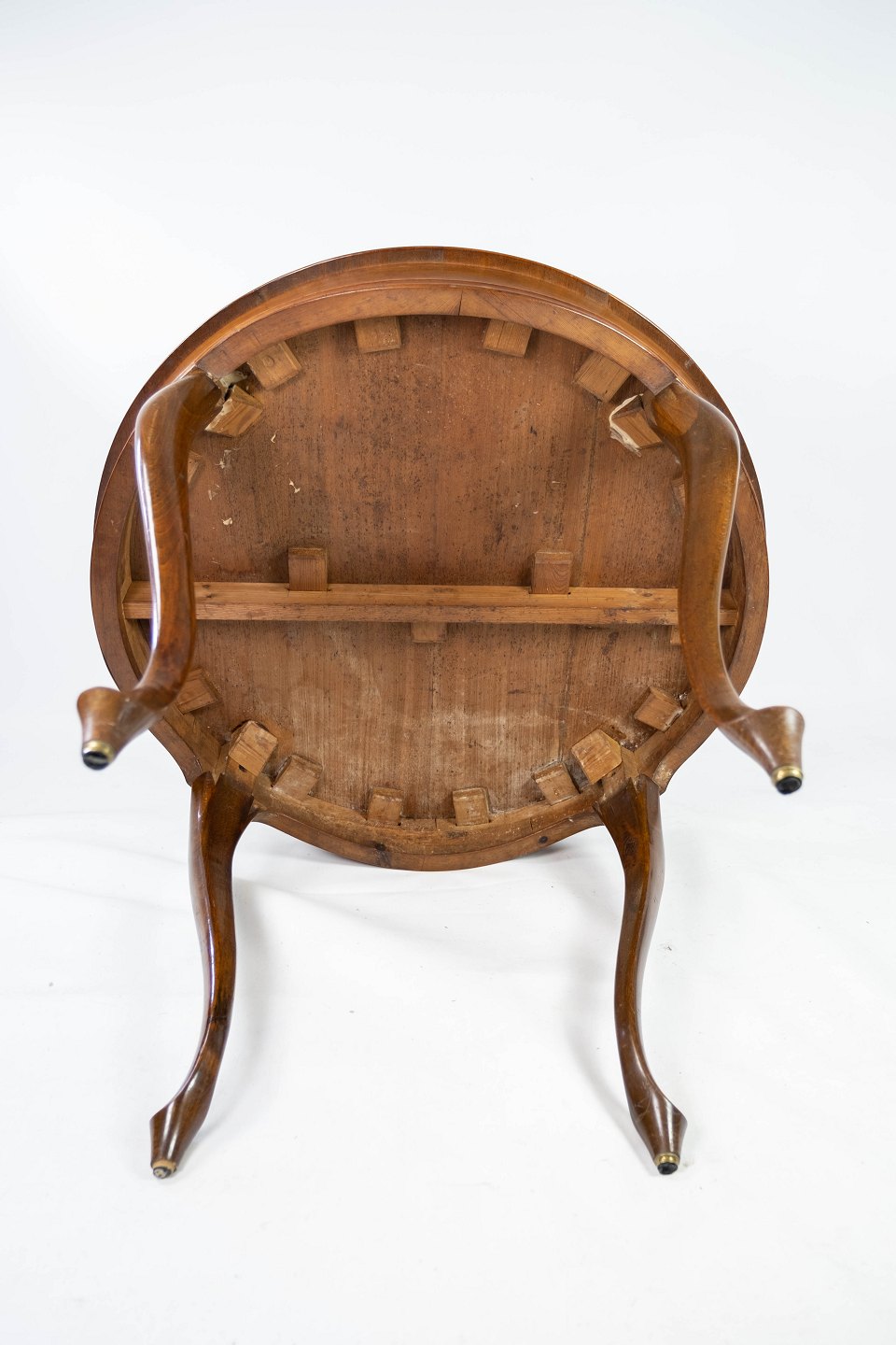 Round dining table of mahogany with inlaid wood of walnut, in great vintage condition from 1880.