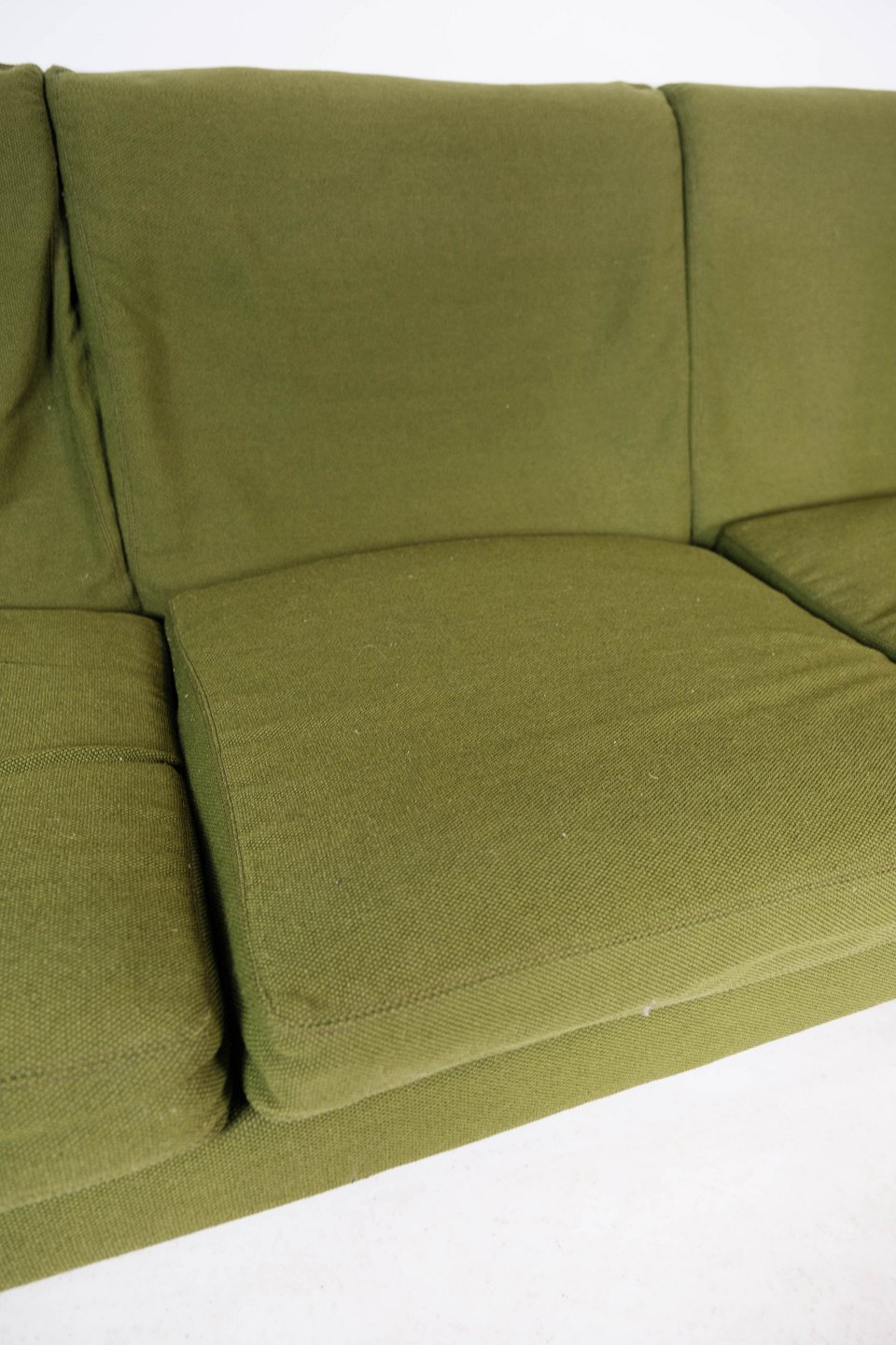 SoldThree seater sofa, Model AP 18S, upholstered with green wool fabric and legs of dark wood, designed by Hans J. Wegner from the 1960s.