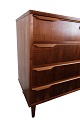 En kommode i teaktræ af dansk design fra 1960'erne. Kommoden har 4 skuffer og nøglen ligger i øverste skuffe. står i meget fin brugt stand.