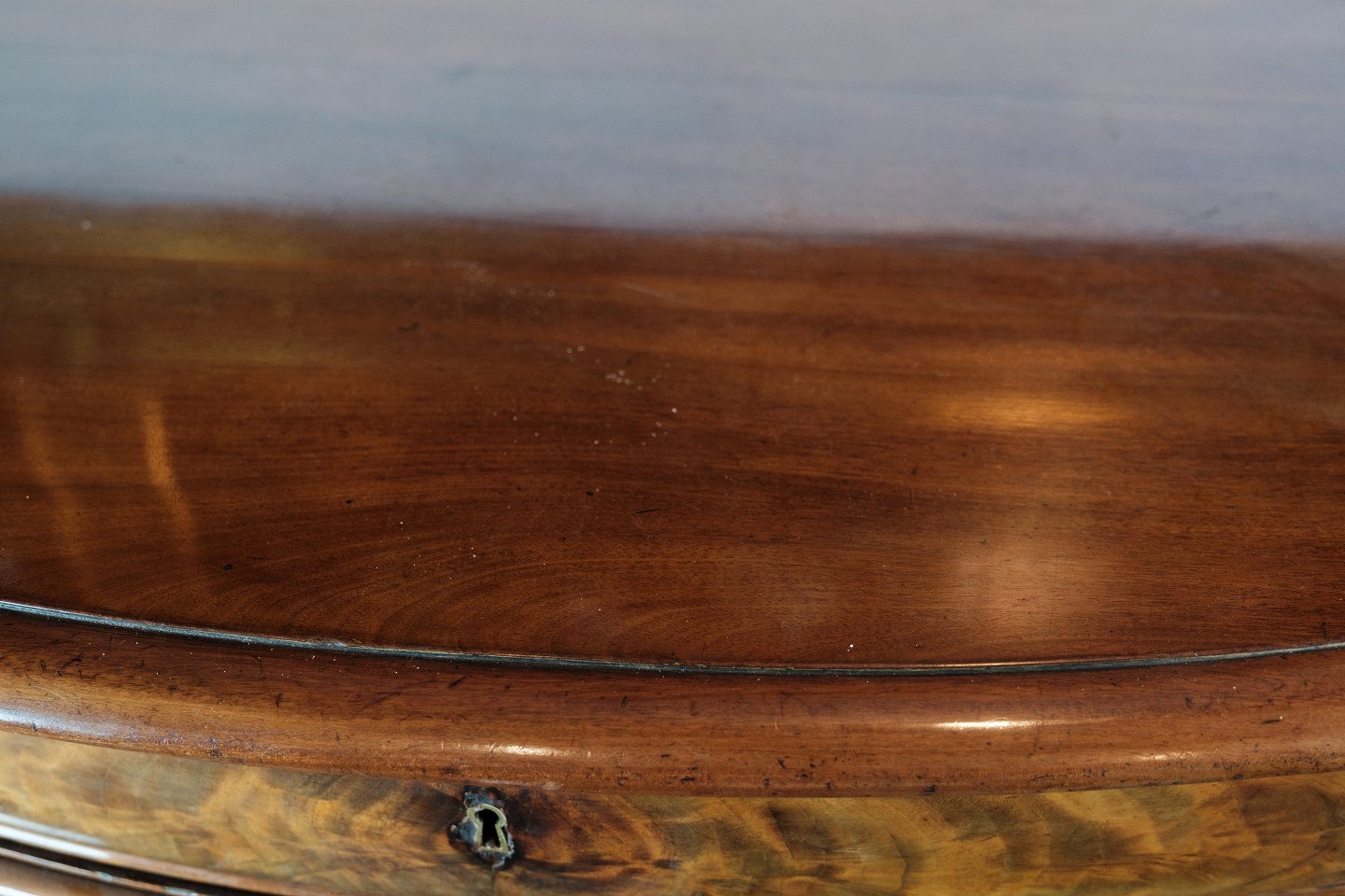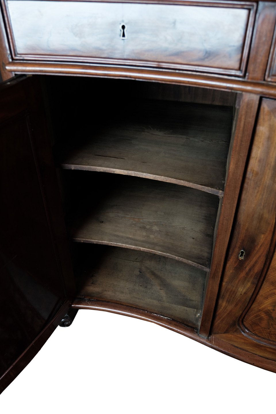 SoldA sideboard in mahogany with a curved front originating from Denmark made in the 1860s. In very good used condition.