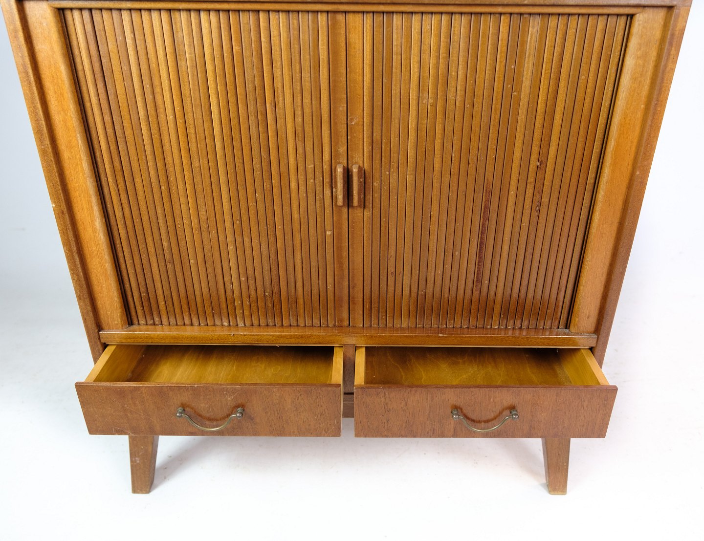 This teak chest of drawers is a beautiful example of Danish design from the 1960s. Crafted from teak wood, the chest of drawers exudes warmth and natural beauty that was characteristic of this era. With its simple but elegant design, the chest of drawers fits perfectly into both modern and retro interiors. It also offers practical storage space with its spacious interior and at the same time gives a timeless aesthetic expression to any room.