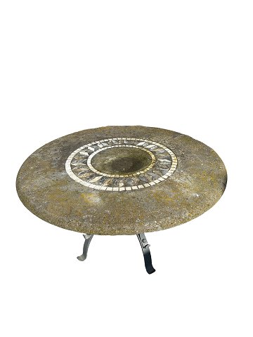 Italian stoneware garden table / dining table with marble decoration from around the 1950s.